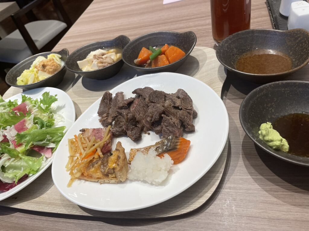 ここの名物は和牛ステーキです。これが食べ放題なんて幸せすぎます。